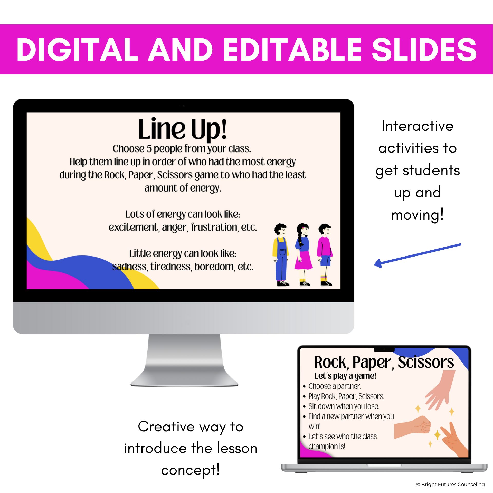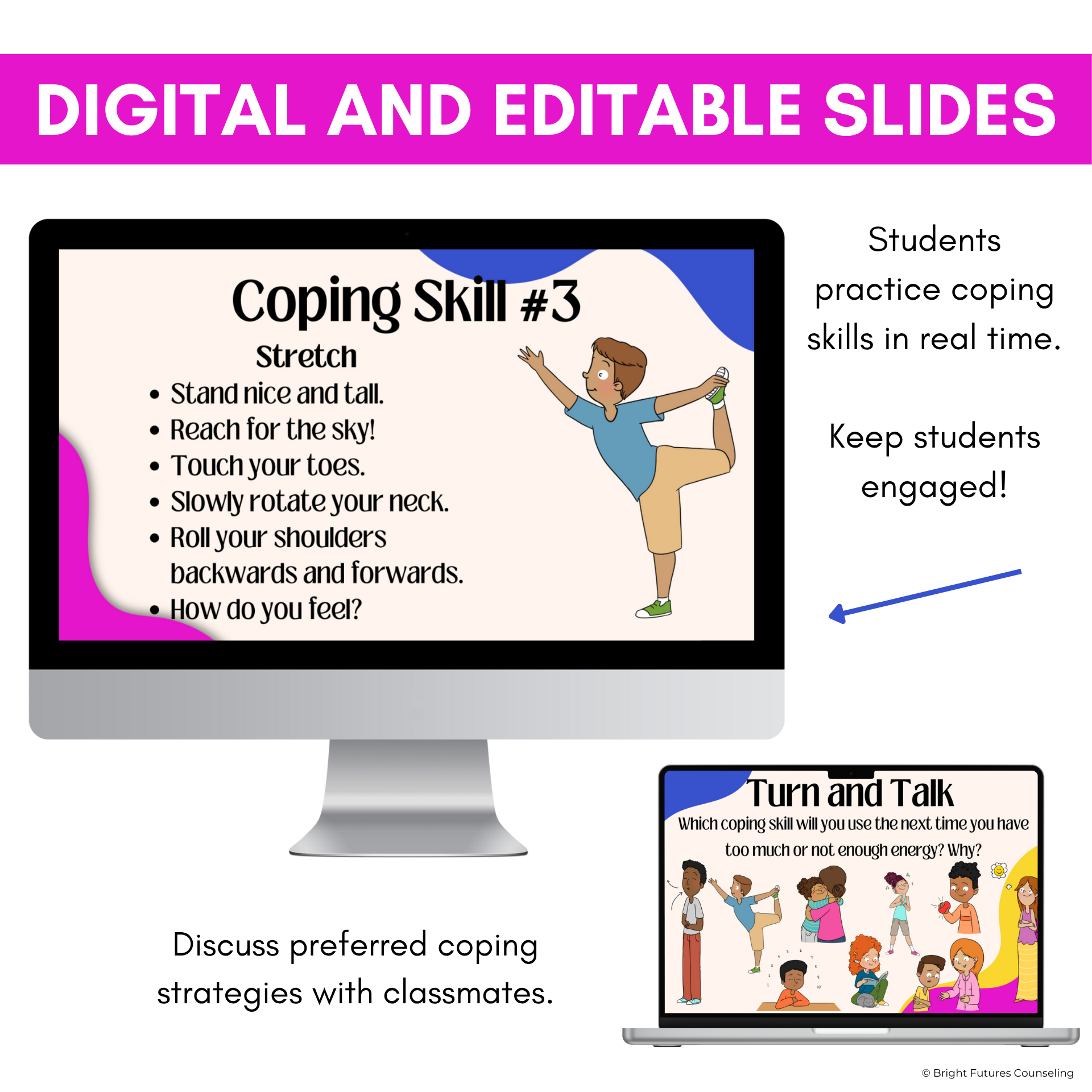 In this classroom counseling lesson, students will identify and discuss when they need to use coping skills. Through engaging and hands on activities, they’ll practice the coping strategies in real time !